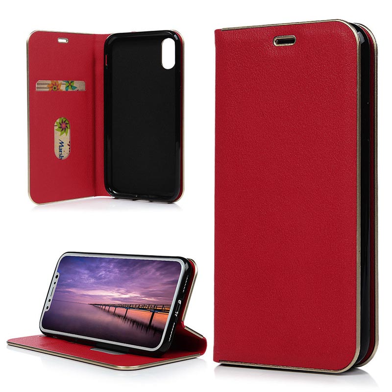 Pure Color Wrapping TPU Inner PU Leather Wallet Case Cover For iPhone X