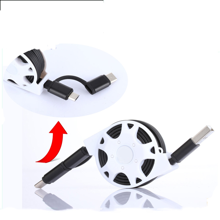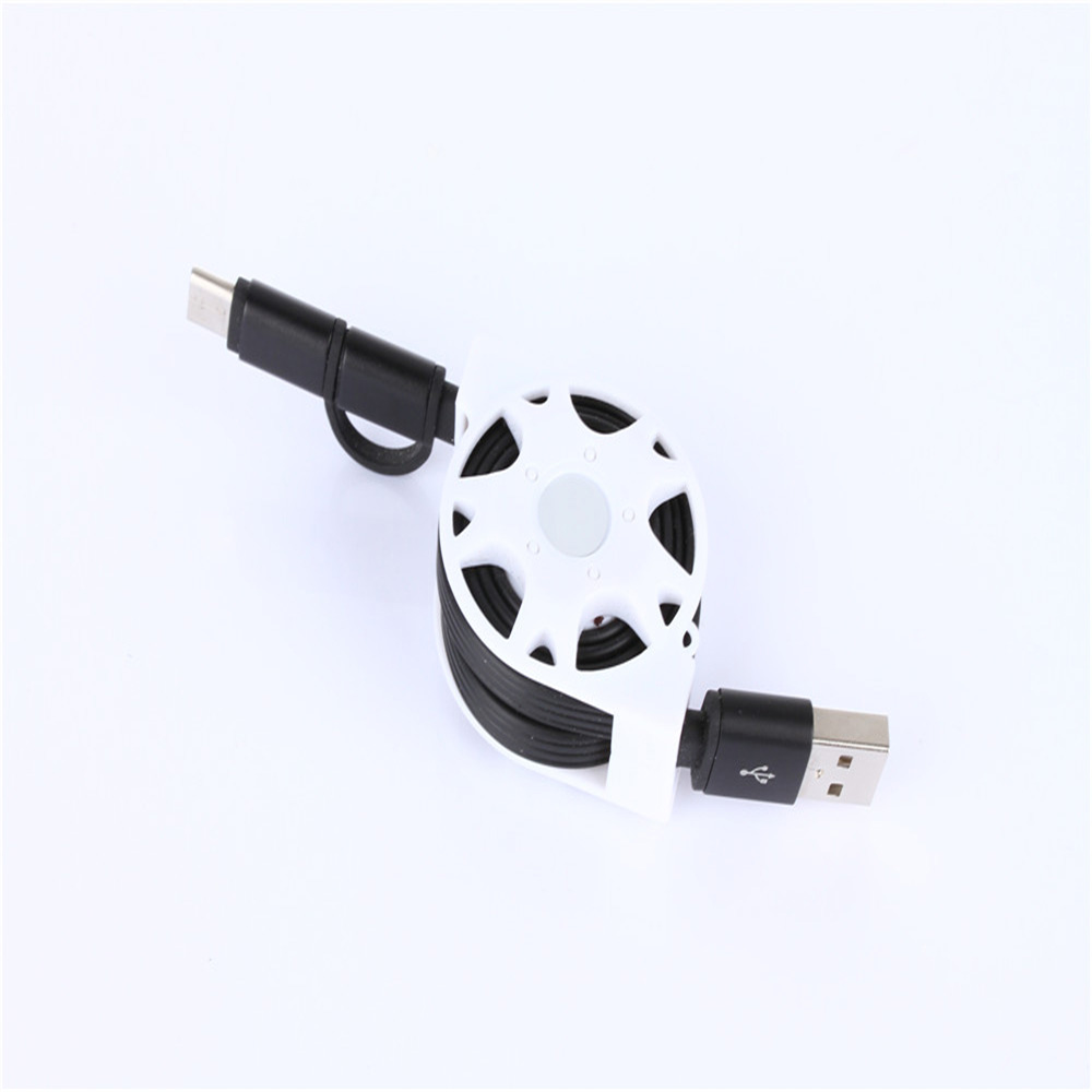 Use:Computer, Mobile Phone, MP3 / MP4 Player, Video Game Player USB Type:Type-C Color:Black/White Product name:2 in 1 retractable data cable Function:Data Transfer/Charge Length:1M/3ft Application:Mobile Phone Types Material:TPE support:2A fast Packing:retail package/custom package Mutile:2 in 1 Device type:Type c & Micro USB